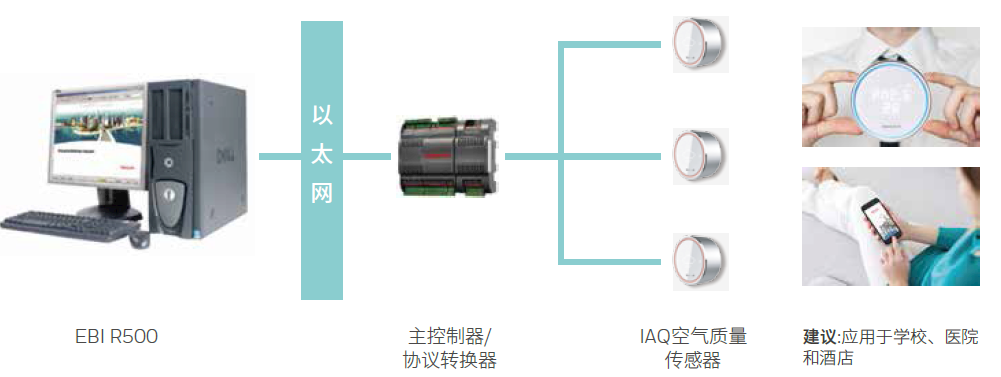 基于Honeywell強(qiáng)大的激光探測和煙感傳感技術(shù)的實(shí)時(shí)空氣品質(zhì)檢測裝置,可衡量顯示空氣中的幾個(gè)重要參數(shù)包括溫度,濕度,PM2.5,TVOC,二氧化碳和甲醛,并可以通過中央樓控軟件進(jìn)行空氣凈化控制。