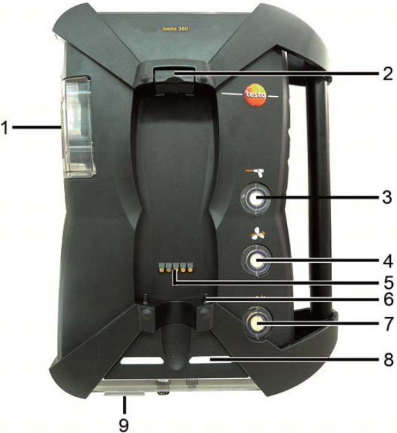 1 冷凝槽 2 手操器鎖定/解鎖按鈕 3 顆粒過濾器 4 過濾器新鮮空氣進(jìn)口(選配:新風(fēng)閥/量程擴(kuò)充全套裝(5x)) 5 連接手操器用的接觸片 6 與手操器鎖緊的導(dǎo)銷 |