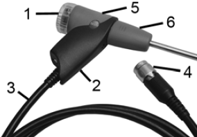 1 可拆卸過濾艙,配有窗口和顆粒過濾器 2 探頭手柄 3 連接電纜 4 連接測量儀器的接口插頭 5 探頭模塊鎖緊/解鎖裝置 6 探頭模塊 |
