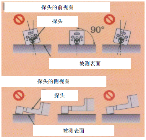 將SJ-210正確安裝在測量物上。使測針正確接觸測量面,檢出器和測量面平行。