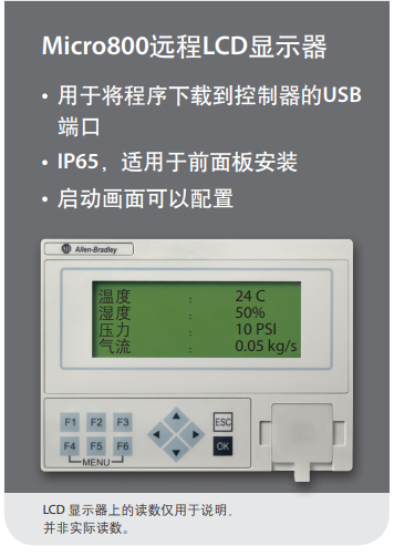 Allen-Bradley Micro800遠(yuǎn)程LCD顯示器可連接到控制器的內(nèi)置RS232