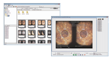 用戶可在將JPEG靜態(tài)圖像和AVI動(dòng)態(tài)影像記錄至CF卡或是USB快閃驅(qū)動(dòng)器中,并可使用ImageNotepad為記錄的圖像輸入較長的說明。輸入文字時(shí),若輸入的是字母則會(huì)顯示一組相近的單詞,從而使文本輸入更加的簡便快捷。當(dāng)將檢測數(shù)據(jù)傳入計(jì)算機(jī)時(shí),用戶為圖像添加的說明將作為圖像的一部分可以立即進(jìn)行瀏覽。