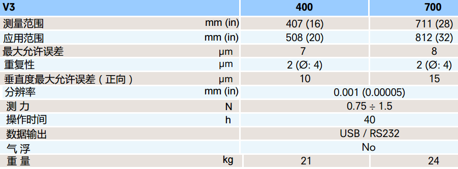 主要特點(diǎn):一測(cè)量范圍400/700mm一操作簡(jiǎn)便快速 一測(cè)頭測(cè)力連續(xù)可調(diào) 一鑄鐵底座,優(yōu)良的穩(wěn)定性 一可選配300mm以上測(cè)頭 一多種附件可選 一人性化設(shè)計(jì),測(cè)力調(diào)整無(wú)需使用工具 一RS232&USB雙接口輸出 A 鑄鐵基座座,優(yōu)良的穩(wěn)定性 B 氣浮及功能快捷按鍵(V4) C 測(cè)量托架移動(dòng)手輪 D 可更換測(cè)頭&傳感器 E 應(yīng)用擴(kuò)展測(cè)頭裝夾器(V4) F 多功能控制及顯示器 G 測(cè)力平衡調(diào)整系統(tǒng) V3&V4各自特點(diǎn)
