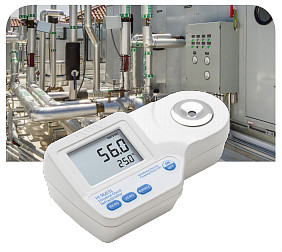 HI96831數(shù)字折光儀利用折射率測(cè)量來(lái)確定乙二醇基溶液的體積百分比和凝固點(diǎn);乙二醇用于工業(yè)應(yīng)用的乙二醇冷卻系統(tǒng)。保持適當(dāng)?shù)囊叶及俜直仍谝叶祭鋮s器中很重要,因?yàn)檫^(guò)低的百分比可能導(dǎo)致系統(tǒng)凍結(jié)和破裂,而過(guò)多的乙二醇會(huì)降低系統(tǒng)效率。儀器將樣品的折射率轉(zhuǎn)換為體積百分比或凝固點(diǎn)。這些轉(zhuǎn)換基于國(guó)際公認(rèn)的乙二醇溶液?jiǎn)挝晦D(zhuǎn)換和溫度補(bǔ)償參考(例如CRC Handbook of Chemistry and Physics,第87版)。HI96831是一款易于使用的工具,用于測(cè)量現(xiàn)場(chǎng)或?qū)嶒?yàn)室中乙二醇溶液的凝固點(diǎn)和體積百分比。