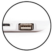 1個USB端口用于數(shù)據(jù)存儲; 1個微型USB端口,用于充電和電腦數(shù)據(jù)傳輸