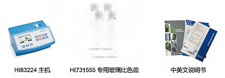 HI83224:主機(jī),標(biāo)配不含測(cè)量項(xiàng)目試劑,HI731555 定制專用玻璃比色皿(規(guī)格:?16×100mm),中英文使用說(shuō)明書(shū)