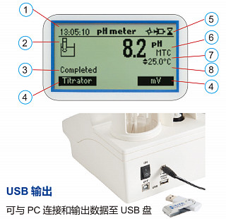 ? 顯示所有滴定數(shù)據(jù),并能將數(shù)據(jù)通過USB接口存儲、輸出到USB盤或電腦上