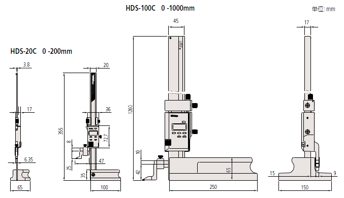 | 570-227 | HDS-20C | 0 - 200mm | 0.01mm | 4mm | ±0.03mm | 0.01mm | 355mm | 1.4kg |