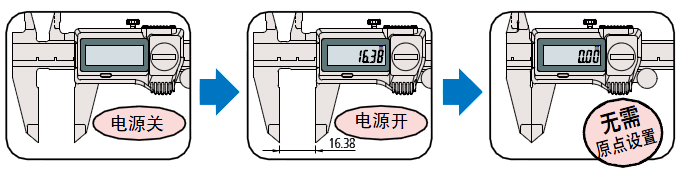 內(nèi)置ABSOLUTE 標(biāo)尺意味著卡尺通電后不用設(shè)置原點(diǎn)就可以立即進(jìn)行測量。就像用游標(biāo)卡尺測量一樣簡單