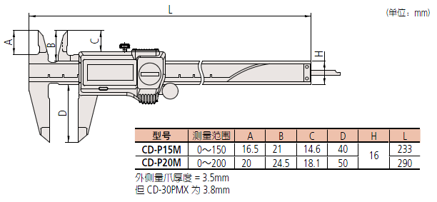 500-721-20 CD-P15MW 0- 150 ±0.02 168 外徑測量面帶有硬質(zhì)合金量爪內(nèi)