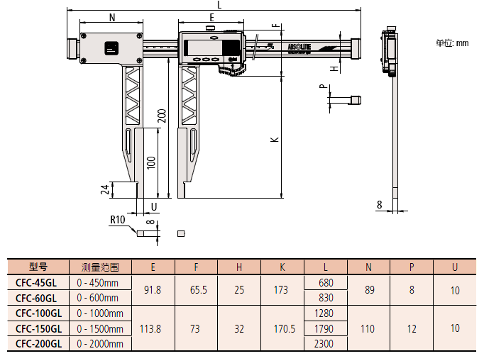 | 552-150-10 | CFC-45GL | 0 - 450mm(20.1 - 470mm) | ±0.06mm |