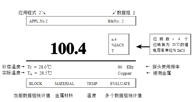 ③將探頭垂直放置在工件上,待嘀- -聲過后起探頭,此時得到的電導(dǎo)率數(shù)值即為自動補(bǔ)償?shù)?0"C的電導(dǎo)率值。如不是在空調(diào)房間或度波動比較大,第②步切勿跳過! .!