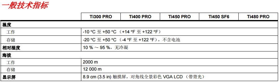 美國福祿克紅外熱像儀Ti300 PRO一般技術(shù)指標(biāo)