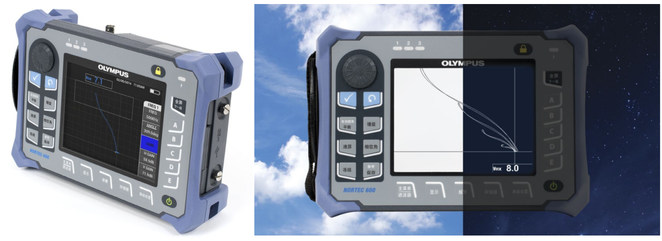 Olympus在這款袖珍便攜、堅固耐用的新型NORTEC 600儀器中匯集了高性能數(shù)字電路和渦流探傷方面的先進技術(shù)。NORTEC 600帶有清晰明快的5.7英寸VGA顯示屏,并具有真正的全屏模式,在多數(shù)光線條件下都可以呈現(xiàn)可見度很高、對比效果很好的渦流信號。