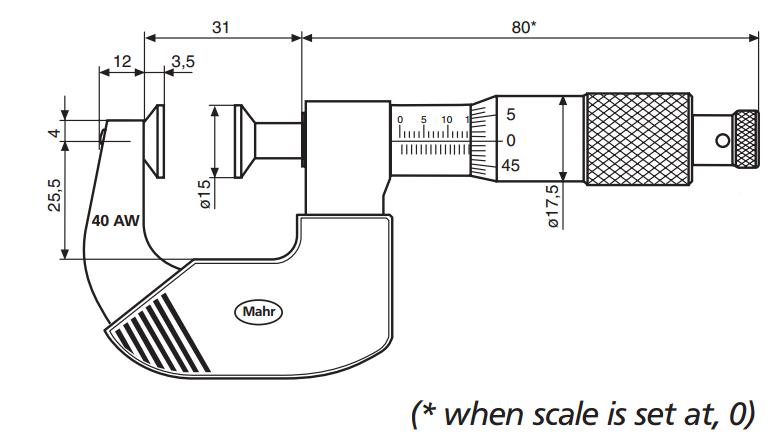 德國馬爾MICROMAR 40AW千分尺, mm,用于測量軟材料,如橡膠,紙板,氈等,鋼制絲桿和測砧經(jīng)硬化處理