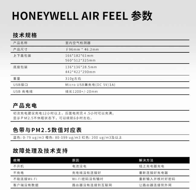 HONEYWELL AIR FEEL   PM2.5檢測(cè)儀