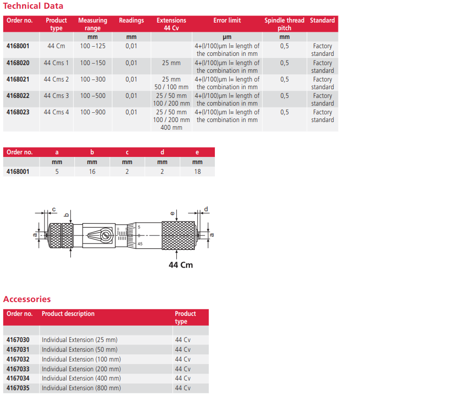MICROMAR 44 CMS 4 內(nèi)徑千分尺套裝,用于測(cè)量大內(nèi)徑。具有堅(jiān)固的輕型管狀結(jié)構(gòu)、絲桿經(jīng)硬化處理,表面拋光、帶鎖緊裝置、刻度表面拋光鍍鉻、硬質(zhì)合金球面測(cè)量面、可更換的延長桿44 Cv帶有圓柱形導(dǎo)向筒,保護(hù)套筒內(nèi)帶安裝彈簧,用于擴(kuò)展測(cè)量范圍。保護(hù)軸套表面拋光鍍鉻、示值誤差主體干分尺為5 μm