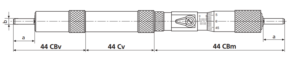 MICROMAR 44 CB 內(nèi)徑千分尺,有較小的測量面用于測量大直徑上的槽,主體結(jié)構(gòu)包含:內(nèi)徑干分尺44 C8m以及尾套管C8v,小測量面用于測量溝槽??筛鼡Q的延長桿44 Cv帶有圓柱形導向筒,保護套筒內(nèi)帶安裝彈簧,用于擴展測量范圍(見附件)