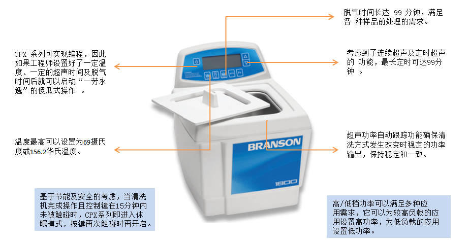 當(dāng)液位、溫度及周邊環(huán)境(光線、負(fù)載)發(fā)生變化時(shí),清洗機(jī)可以通過自動(dòng)跟蹤功能對(duì)輸出功率進(jìn)行調(diào)節(jié),即使有多個(gè)用戶或多種清洗條件發(fā)生改變時(shí),都能確保輸出功率及清洗效果的一致性。 始終如一的空化效應(yīng)確保了對(duì)工件表面的均勻清洗并能輕松地清洗工件上的微小孔隙。 3)休眠模式 基于節(jié)能及安全的考慮,當(dāng)清洗機(jī)完成操作且控制鍵在15分鐘內(nèi)未被觸碰時(shí),CPX系列即進(jìn)入休眠模式。觸摸控制器上的任何鍵即可使裝置恢復(fù)原態(tài)。 4)脫氣功能 脫氣時(shí)間長(zhǎng)達(dá)99分鐘,提高各種樣品前處理的效率。 5)高/低功率控制調(diào)節(jié) 可對(duì)超聲波清洗機(jī)中聲波的能量進(jìn)行高低調(diào)節(jié),它可以為較高負(fù)載的應(yīng)用設(shè)置高功率,為低負(fù)載的應(yīng)用設(shè)置低功率,幫助保護(hù)易碎的工件免受潛在損壞 |