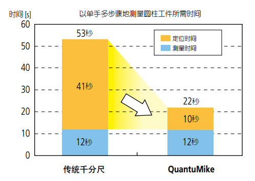 QuantuMike (快進(jìn)千分尺) 293 系列 — IP65 防冷卻液千分尺,進(jìn)給速度達(dá)到 2mm/rev, 三豐公司棘輪套管測(cè)力裝置可保證測(cè)量結(jié)果 的重復(fù)精度。將測(cè)微螺桿軸向的微振動(dòng)傳輸 至測(cè)量面,以提供恒定的測(cè)力,實(shí)現(xiàn)與工件 的良好接觸。定壓作用既來(lái)自套管也來(lái)自限 速器,因此,定壓裝置非常易于使用,即使 在單手測(cè)量時(shí)??赏ㄟ^(guò)聲音確認(rèn)加壓狀態(tài), 限速器可實(shí)現(xiàn)測(cè)量懸殊尺寸時(shí)所需要的快速 測(cè)微螺桿進(jìn)給。單手握持即可在同一測(cè)量時(shí)間內(nèi)實(shí)現(xiàn)6步測(cè)量:與傳統(tǒng)千分尺相比,定位時(shí)間和測(cè)量時(shí)間可 分別降低 60% 和 35%*。 * 依據(jù)三豐公司對(duì)典型工件的測(cè)量時(shí)間所作的對(duì)比測(cè)試。