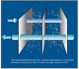 特殊設(shè)計(jì)的換熱器嵌裝在整個(gè)系統(tǒng)內(nèi),通過熱交換板,充分迅速將熱量傳遞到冷卻介質(zhì)中。過程迅速穩(wěn)定,將能耗降到盡可能低,保證穩(wěn)定的露點(diǎn)輸出。