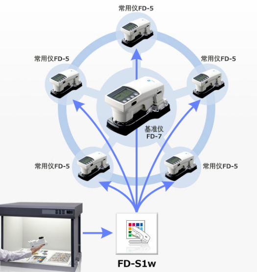 通過(guò)用FD-7主機(jī)測(cè)量環(huán)境光源后,將用戶光源數(shù)據(jù)傳送到多臺(tái)FD-5