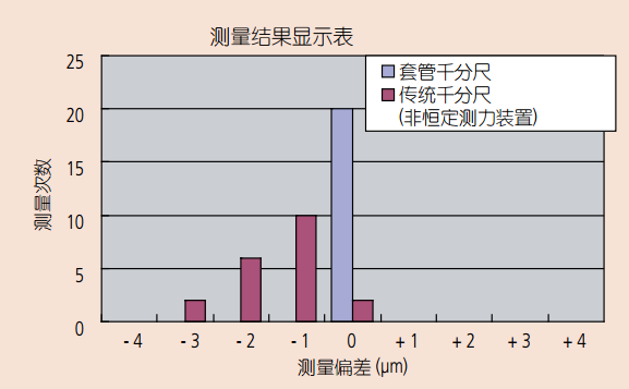 單手操作時 新手使用傳統(tǒng)千分尺和棘輪套管千分尺測量工件 20 次的測驗(yàn)結(jié)果。