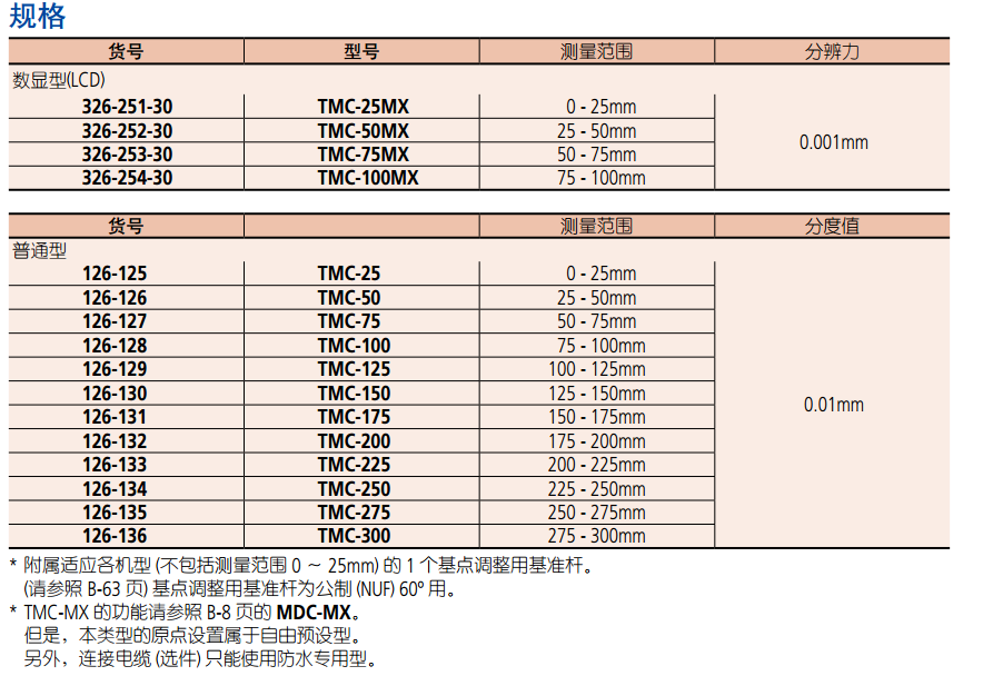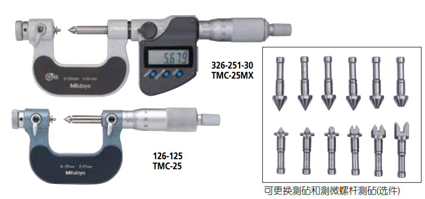 螺紋千分尺-326, 126 系列 —可更換測砧,及測微螺桿測量面型,TMC-MX · TMC