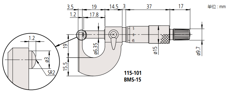 ? 測(cè)量面為硬質(zhì)合金。 (115-101:只有測(cè)微螺桿是硬質(zhì)合金)。