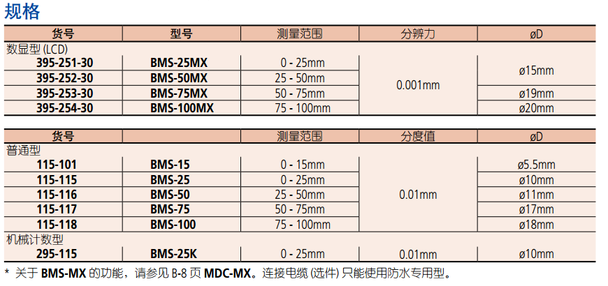 壁厚千分尺395, 115, 295 系列BMS-MX · BMS · BMS-K