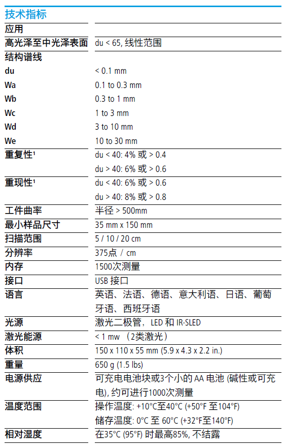 9. 充電和數(shù)據(jù)傳輸?shù)鬃阌趥鬏敂?shù)據(jù)到計(jì)算機(jī)和對桔皮儀電池進(jìn)行充電 10. smart-chart 軟件,便于數(shù)據(jù)分析和文檔管理 |