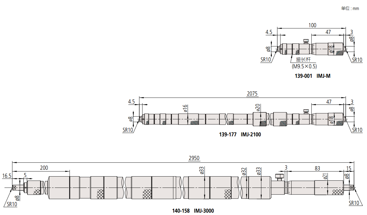 接桿式內徑千分尺139 系列 — 接長桿型 (主尺)IMJ-M