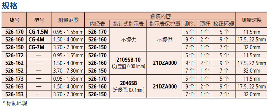 ? 指針式指示表和防護(hù)罩都是選件。 有一些指示表和保護(hù)罩不能與這些內(nèi)徑表使 用。