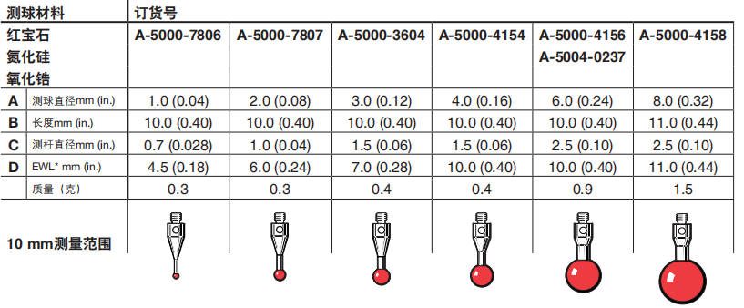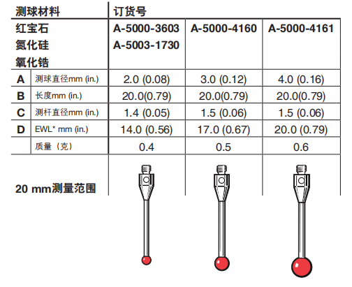 測(cè)針是測(cè)量系統(tǒng)的組成部分,它與被測(cè)工件接觸,使測(cè)頭機(jī)構(gòu)產(chǎn)生位移。所產(chǎn)生的信號(hào)經(jīng)處理得出測(cè)量結(jié)果。被測(cè)工件的外型特征將決定要采用的測(cè)針類(lèi)型和大小。在所有情況下,測(cè)針的*大剛性和測(cè)球的球度非常重要。