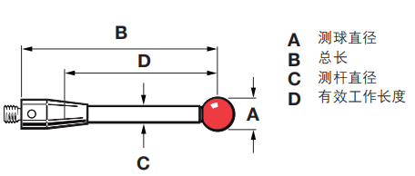 測針是測量系統(tǒng)的組成部分,它與被測工件接觸,使測頭機構(gòu)產(chǎn)生位移。所產(chǎn)生的信號經(jīng)處理得出測量結(jié)果。被測工件的外型特征將決定要采用的測針類型和大小。在所有情況下,測針的*大剛性和測球的球度非常重要。