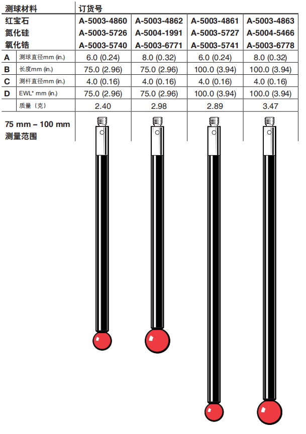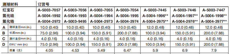 直測針適用于檢測可無阻礙地直接接觸被測表面的簡單特征。碳纖維測桿的重量非常輕