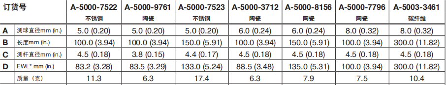 M4 ?8 mm紅寶石測球,陶瓷測桿,長度100 mm,有效工作長度100 mm,產(chǎn)品代碼: A-5000-7796