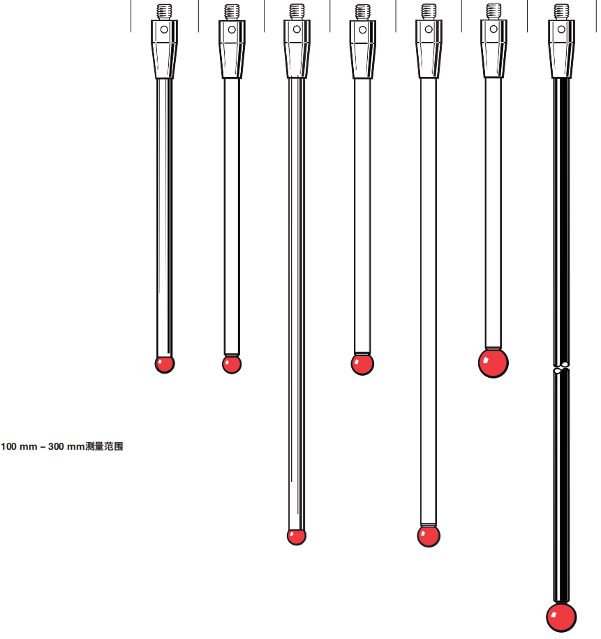M4 ?8 mm紅寶石測球,碳纖維測桿,長度300 mm,有效工作長度300 mm,產(chǎn)品代碼: A-5003-3461