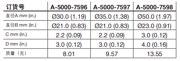 盤形測(cè)針用于檢測(cè)星形測(cè)針無法觸及的孔內(nèi)退刀槽和凹槽。一系列盤形測(cè)針可提供“半球形滾子”以實(shí)現(xiàn)凹槽高度測(cè)量。
