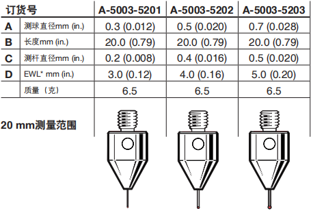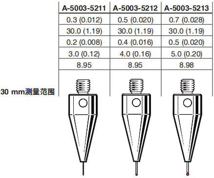 下列測頭全部使用M5螺紋測針,但配備適當?shù)霓D接頭也可使用其他螺紋規(guī)格的測針。