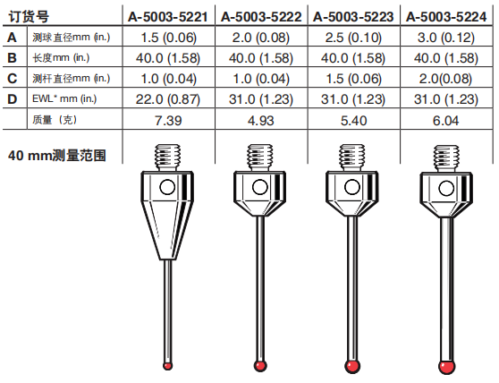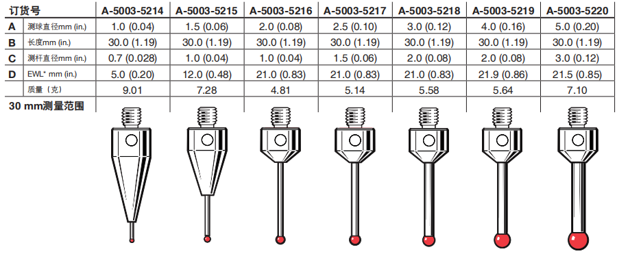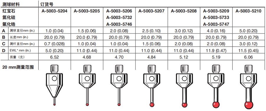 雷尼紹M5 紅寶石球測(cè)針(碳化鎢測(cè)桿)