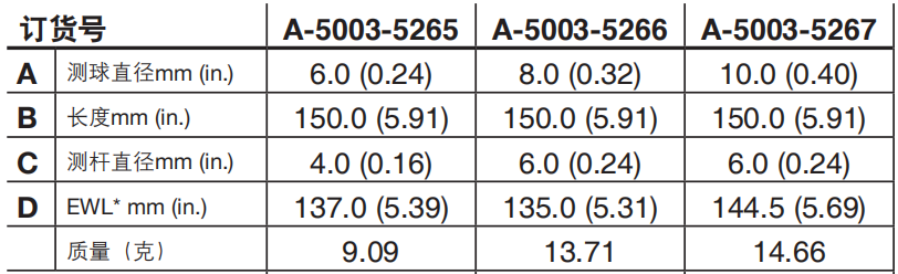 碳纖維的材料有多種等級。在任何情況下,雷尼紹GF在拉伸和扭曲的情況下都能提供很好的剛性特性(這對于星形結(jié)構(gòu)的測針很重要),而且重量低。碳纖維是一種惰性材料,這種特性與特殊樹脂基體相結(jié)合,在大多數(shù)惡劣的機床環(huán)境下具有優(yōu)異的防護(hù)作用。對于長度大于50 mm的測桿,雷尼紹GF是剛性高、質(zhì)量輕的理想材料。它是高精度應(yīng)變片式測頭的理想測桿材料,具有優(yōu)異的減振性能和可忽略不計的熱膨脹系數(shù)。