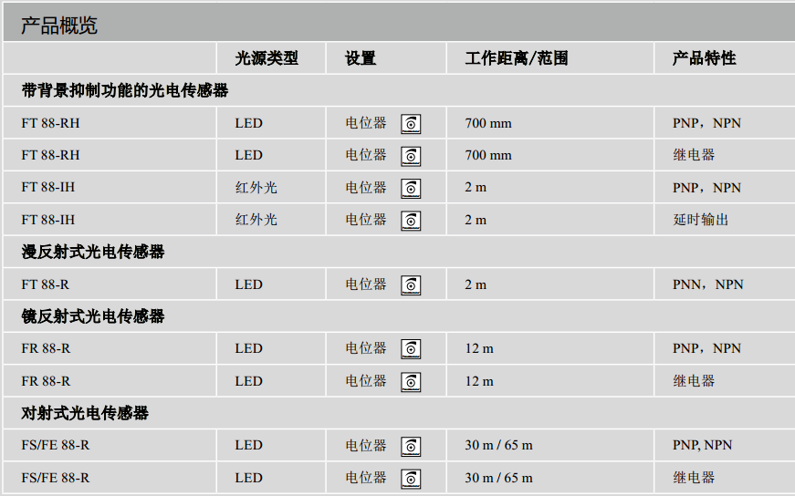| FR 88-R | LED | 電位器 | 12 m | PNP, NPN | |