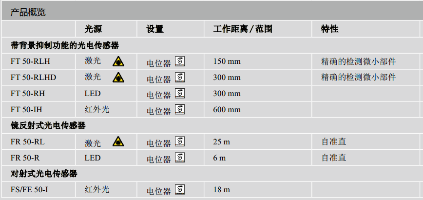 FT 50-RLH帶背景抑制功能的激光型光電傳感器