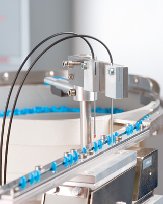 光 纖 傳感 器 應(yīng) 用于 堵 塞 控 制 用FL70-R-PSD 光纖傳感器和 K2L-34光纖,可以 檢測 傳 送 帶 上的 塑 料塞 子 是 否 堵塞。FL70-R-PSD傳感器安裝在控制柜中,但這不是必要的因為有防護(hù)等級高達(dá)IP64的堅(jiān)固外殼。