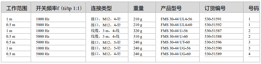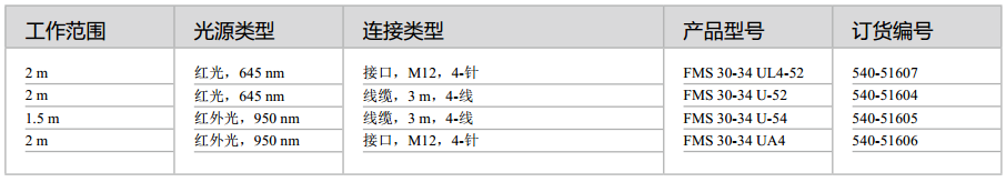 FMS30:FMS30-4U光纖傳感器的工作距離很大,從近距離到遠(yuǎn)距離都適用。切換傳感器前端的開關(guān), 可以把工作距 離縮短為原來的50%。使得近距離工作時(shí)的開關(guān)點(diǎn)設(shè)定更為簡(jiǎn)便,同時(shí)也改善了小物體檢測(cè)的效果。前端的另一個(gè)開關(guān)用來轉(zhuǎn)換輸出信號(hào),所以傳感器可根據(jù)實(shí)際應(yīng)用情況提供正確的邏輯信號(hào),即常開或常閉。每個(gè)傳感器都有獨(dú)自的PNP/NPN開關(guān)量輸出。