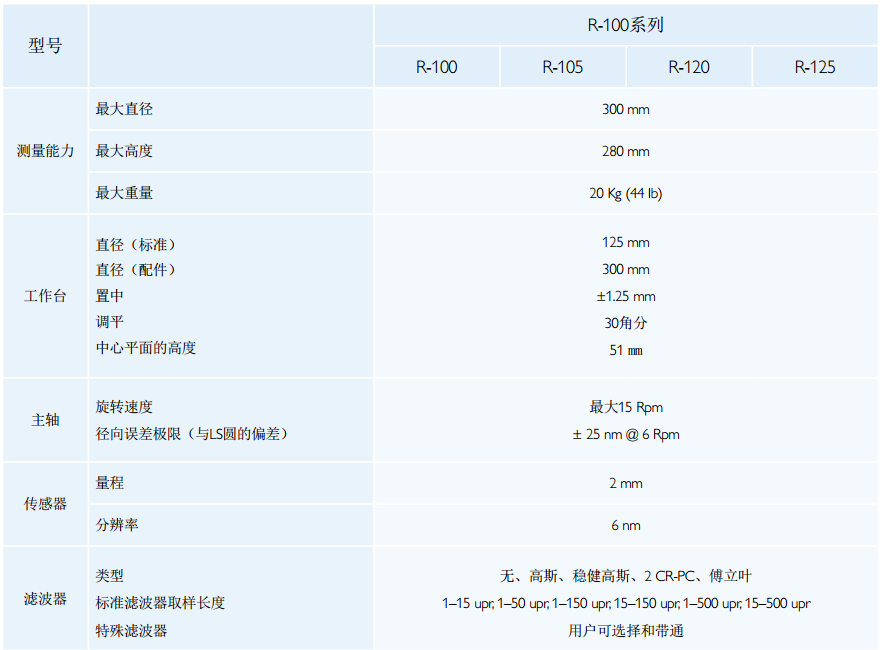 此系列圓度產(chǎn)品,堅(jiān)固耐用、精確度高,廣泛適用于車間、檢驗(yàn)室等各類環(huán)境。新的Surtronic®R-100系列儀器包含多種系統(tǒng)、應(yīng)用特定的配件和按需定制的夾具,能提供靈活多變的解決方案,滿足各類圓度和形狀需求。