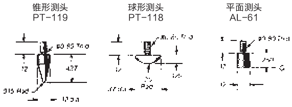 ·常規(guī)配置:對稱型刻度盤,右側(cè)為+:垂直型凸耳后蓋(中心型);標準測頭,半徑.09",長度.093" o