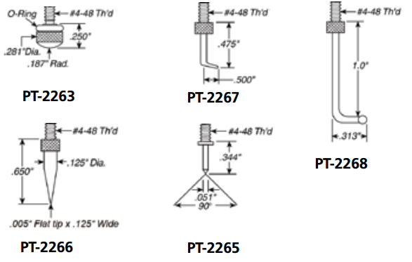 右直角測頭先進(jìn)為直徑為.093"的球,用于接觸到使用