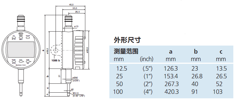 | 4337625 | 1086 Ri | 25 mm | 1" | 0.001 mm / 0.001 mm / 0.002 mm / 0.005 mm / 0.01 mm | .00002" / .00005" / .0001" / .0002" / .0005" | 0.004 mm | 0.001 mm | 工廠標(biāo)準(zhǔn) | 0.65 - 1.15 | IP 42 | 11 mm |